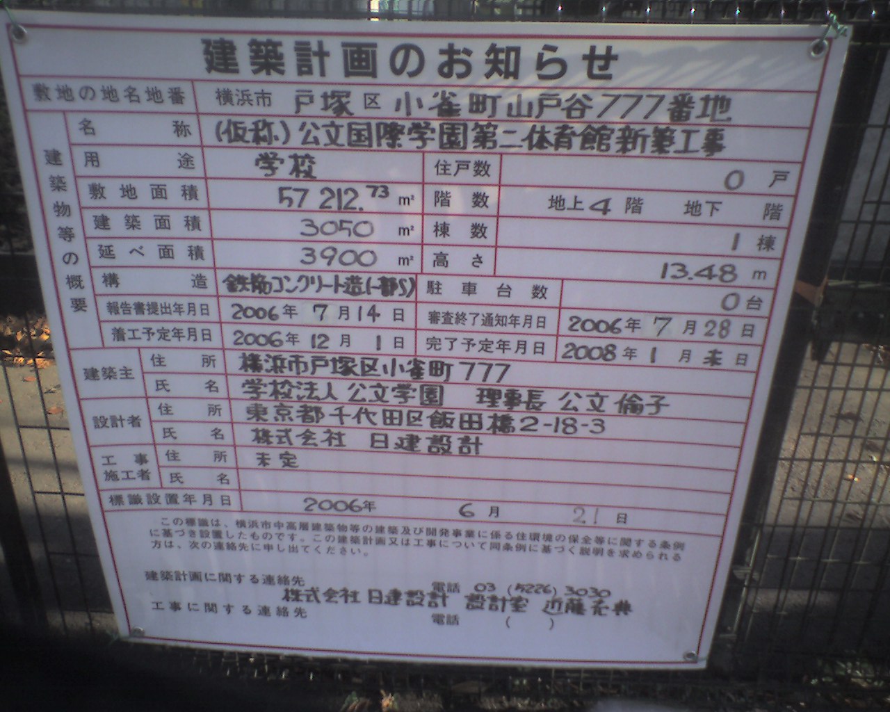 延べ面積3900平方メートル,地上4階建ての第2体育館の建設が始まり,来年2008年の1月末に完成するそうです.