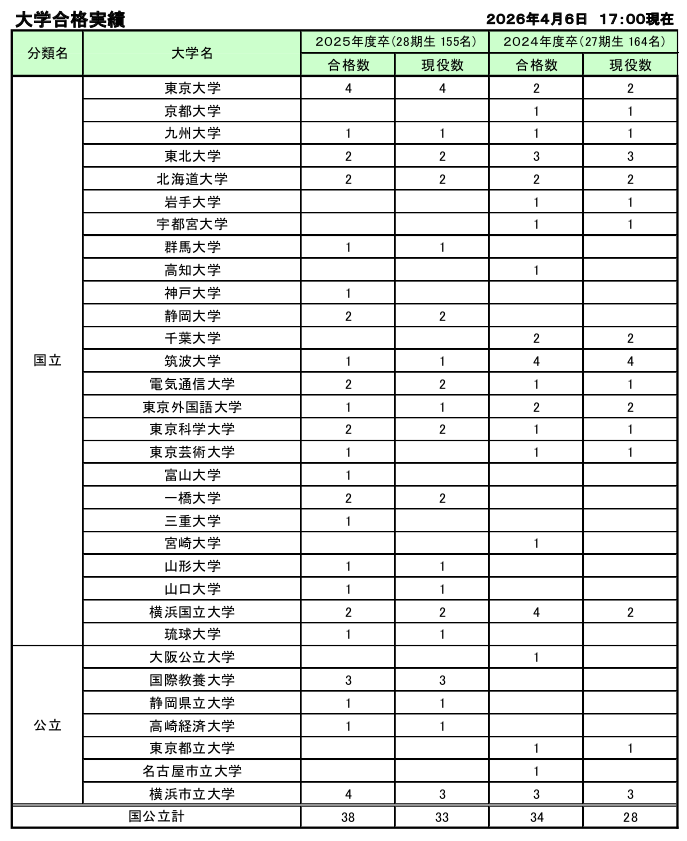 大学入試結果:大学合格実績速報