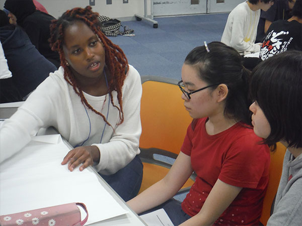 大分コースはAPU(立命館アジア太平洋大学)を訪れ、APUの留学生と5日間一緒に過ごします。前半のプログラムは、様々な課題について何度もグループで話し合います。自分の意見を伝え、相手の考えを受け入れ、そして1つの考えをまとめ上げ発表します。これを英語で毎日行います。別府温泉の鉄輪でのフィールドワークも人気です。後半のプログラムは、安心院にて留学生と24時間一緒に過ごす民泊を行います。学園では体験できない農作業や民芸品作成などを体験し、地元の方々と地域の問題などを学びます。どの家庭でも温かな交流や貴重な体験をし、とても有意義な時間になりました。